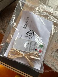 Lampada ricaricabile tramite cavetto compreso nella confezione, compresa anche di telecomando per ciascuna lampada.