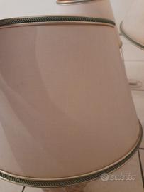 Tris lampade con base rosa antico e paralume ecrù con cordoncino verde, nuove mai usate, funzionanti.