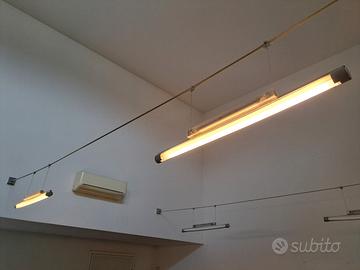 vendo due fili con 4 lampade a tubo Metalspot usati ottime condizioni, neon 92 cm, diametro neon 4,5 cm., lunghezza fili 6 metri ciascuno regolabili, ognuno con 2 neon.