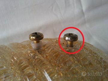 Vendo coppia di lampade da parete Applique in vetro graniglia colore Champagne vintage, le condizioni generali sono buone non presentano scheggiature, mancante di un gommino vite come si vede nella foto, porta lampadina attacco E 14, non hanno marchi di fabbrica, vige la regola visto e piaciuto le foto sono reali applique in vendita, non spedisco ritiro a carico del compratore, se avete domande o volete altre foto potete contattarmi tutti i giorni esclusa la Domenica e festivi, massima disponibilità e serietà, ATTENZIONE io non uso il servizio TUTTO SUBITO quindi gentilmente contattatemi per compravendita fra privati grazie.