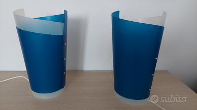Vendo per inutilizzo 2 lampade in plastica in ottimo stato di colore blu/bianco satinato, molto resistenti e totalmente smontabili per una migliore pulizia. Sono complete di lampadine da 13 watt con attacco E14. Le lampade supportano lampadine fino a 60 watt. Consegna a mano, no spedizione.