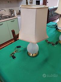 2 lampade per comodini e 1 lampada per como. Anni 70. Materiale Ottone e Vetro.