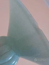 2 lampade da terra con stelo laccato nero e lampada in vetro di murano verde. Quella più bassa ha una piccola scheggiatura impercettibile.