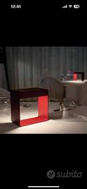 Lampada ricaricabile Dama di Linea Light in metallo verniciato . La fonte luminosa ricaricabile e' magnetica , dotata di cavo usb . Comoda da trasportare con la sua forma a cubo