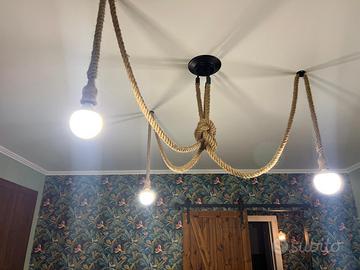 Un Lampadario industriale retrò in corda di canapa per soggiorno Lampade a sospensione ristorante,lampada a sospensione 3 teste 50€