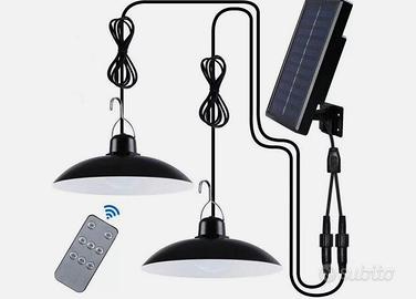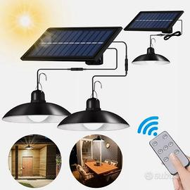 ✨ Set 2 Lampade a Sospensione Solari LED con pannello separato e cavo 3 m. Ideali per giardino, terrazzo, patio, balcone, portico, gazebo, campeggio o interni senza prese. 30 LED per lampada, fino a 800 lm complessivi, angolo 120°, luce fredda regolabile 25/50/100% con telecomando e timer 3/5/8 h. Batteria 4400 mAh ricaricabile, pannello 5,5 V alta efficienza. ABS nero IP44, resistente a pioggia e agenti atmosferici. Ganci inclusi, installazione facile. Zero bolletta, ecoTag: lampade solari, sospensione, led, esterno, interno, giardino, terrazzo, patio, balcone, campeggio, lampadario, faro, energia solare, ricaricabile, wireless.