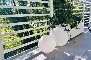 Vendo n.2 lampade solari per uso esterno/interno a LED. Modello Buly acquistato su Westwing. Cambio colore e intensitá regolabile. Telecomando per accensione/spegnimento e scelta di colore e intensitá. La luce può anche essere azionata con un sensore crepuscolare, accenendendosi automaticamente quando è buio. La batteria viene caricata tramite le celle solari integrate o, all’occorrenza, tranite cavo USB. Diametro 30 e 40 cm.