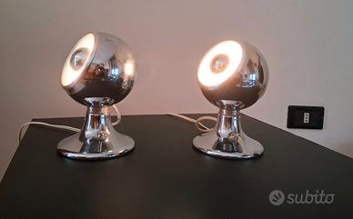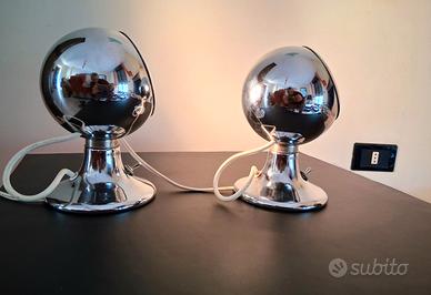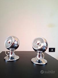 Lampade in acciaio cromato con sfera girevole, supporto a calamita, design Space Age. Prezzo a lampada. Consegna gratuita in quasi tutta la Campania