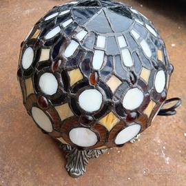 3 lampade stile Tiffany, molto belle, in vetro con base in metallo, cablate, perfette. Forma sferica, diametro circa 22 Cm