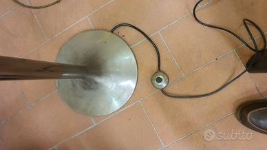 Due lampade identiche del noto designer Frattini, altezza da terra circa 1m 75cm, fine '50. Perfettamente funzionanti, con doppia accensione per i faretti bassi e singolo alto. Paralumi in metacrilato. Molto belle ed in condizioni ottime per gli anni.