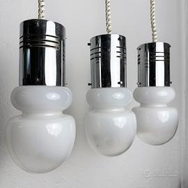 Tris di lampade da soffitto #spaceage anni 70 in vetro. Ottime su un bancone o una penisola.