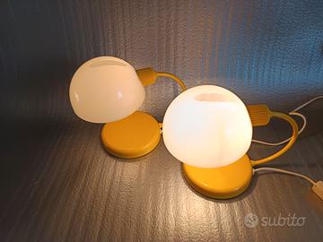 prezzo per la coppia lampade da tavolo / abat jour design vintage space age modernariato base e braccio in metallo verniciato giallo e diffusore in metacrilato opalino bianco in stile " Serpente " di Martinelli Luce altezza 23 cm ca. profondità 26 cm ca. in condizioni molto buone, perfettamente funzionanti per correttezza segnalo una quasi impercettibile deformazione da calore all'apice di uno solo dei diffusori vendute senza lampadine viste e piaciute