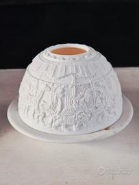 Inserendo una candela votiva la superficie opaca della porcellana biscuit amplifichera' la sua luce, creando giochi di ombre unici.