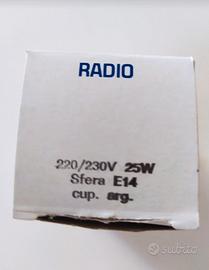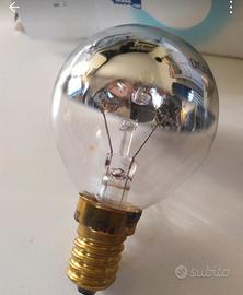 Lampadina con cupola argentata da 25W con attacco E14, marca Radio. È perfetta per lampade in stile Space-Age anni '70