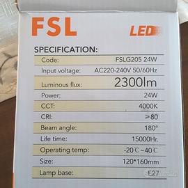 Vendo lampadina led nuova in confezione originale, usata solo un paio d'ore ma... troppo luminosa per le mie esigenze; la lampadina consuma 24W ma ha una resa equivalente ad una lampada ad incandescenza da 130W.