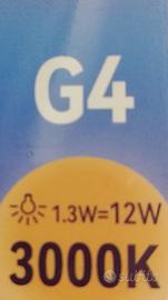 Vendo causa errato acquisto lampadina led G4 da 1,3 W (12 W delle vecchie lampadine alogene), luce calda 3000 k. Marchiata CE. Nuova, scartata dalla confezione ma mai usata perché non entra nel mio portalampada.