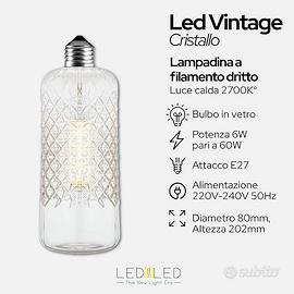 Vendo lampadina LED Vintage dal design elegante in vetro cristallo, ideale anche a vista senza lampadario come elemento d’arredo.
