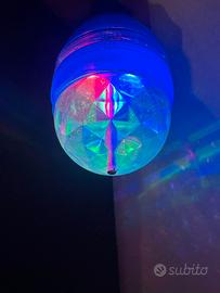 Vendo lampadina effetto sfera da discoteca, la parte sotto ruota e fa girare i colori per tutta la stanza. Vendo causa inutilizzo, perfettamente funzionante come visibile in foto, consegna a mano presso Pescara e dintorni o spedizione con TuttoSubito.