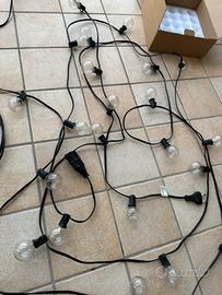 Vendo 2 fili con lampadine a bulbo "effetto vintage". Il filo è da 9 metri ognuno ed ha 25 lampadine.