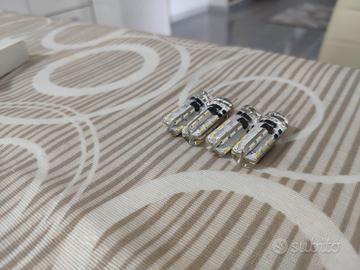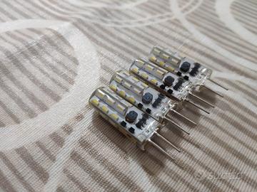 Vendo in blocco quattro nuovissime lampadine AC/DC 12V a 24 led tipo SMD 3014 ad emissione di luce colore bianco freddo 6000K. Potenza erogata 5W, equivalente a 15W delle normali lampadine alogene. Durata garantita per 50.000 ore di funzionamento. Misura 35x9 mm