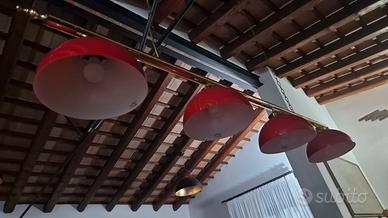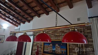 bellissimo lampario a 4 lampade per tavolo da biliardo , a sospensione, con due attacchi al tetto , come nuovo , marchio norditalia ricambi srl