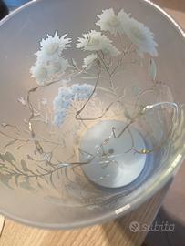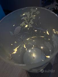 Lampada da tavolo con luci led e disegni floreali. Funziona con 3 batterie AA Sotto interruttore on off come da foto Alta 19 cm Diametro 9 cm