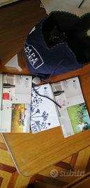 Altezza cm 18 con tappo, larghezza cm11. Completa di scatola, bruciatore catalitico, tappo e imbuto, sacchetto in velluto, cataloghi e istruzioni.