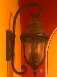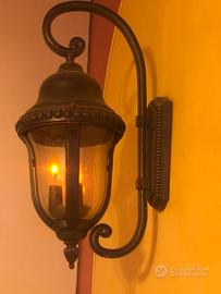 Lampioncini da esterno in alluminio ,effetto ferro battuto sfumato in bronzo misura totale compreso il supporto 60x25x30 .. vetri lavorati con effetti gocce,alimentazione n 3 lampadine .. , perfette condizioni..come nuove ,nessun tipo di usura , (posizionate all’interno x arredamento locale e mai esposte a intemperie. ) disponibili alla vendita n^14 unità prezzo scontato aquistando più unità