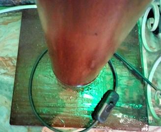 Lampioncino, lampada su colonnina in legno massello, altezza cm 79. diametro colonnina 10 cm. Ho messo una lampadina con luce verde ma ovviamente la lampadina si può cambiare.