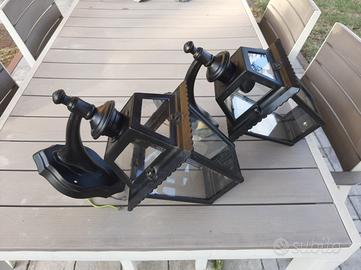 Due lampioni da esterno in ferro con vetro a parete. No spedizione, no perditempo, grazie per la visita.