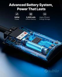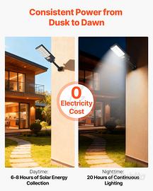 • Vendo da negozio, solo articoli Nuovi e Certificati SPECIFICHE ↓ Lampione solare luminoso: dotato di 5730 LED ad alta luminosità e a risparmio energetico, questo lampione solare da 500 W per esterni offre un potente fascio luminoso grandangolare di 240° con ben 50000 lumen Energia solare a risparmio energetico: alimentata interamente a energia solare, la nostra luce per parcheggio cattura l'energia solare e la immagazzina in una batteria al litio da 5000 mAh durante il giorno Controllo intelligente, illuminazione regolabile: controllato tramite un telecomando RF, il nostro lampione a LED alimentato a energia solare offre 4 modalità. Il sensore di movimento regola automaticamente la luminosità, il rilevamento della luce dall'alba al tramonto accende/spegne, impostazione del timer e luminosità regolabile Elevata resistenza alle intemperie: grazie al design integrato, questo lampione solare è durevole e resistente alle crepe. Con un grado di impermeabilità IP65, funziona in modo affidabile anche in caso di pioggia, neve, temperature elevate e condizioni esterne difficili Facile da installare e utilizzare: dotata di tutti gli accessori di montaggio, la nostra luce solare commerciale per esterni è facile da installare senza cavi: basta fissarla con viti. Ideale per cortili, vialetti, cortili, garage, balconi, campi da basket e piazze