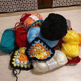 Vendo causa inutilizzo lotto stock di lana acrilica composto da diversi gomitoli nuovi o iniziati multicolore e alcuni già lavorati tutto per un totale in peso di 570 gr (come da foto )