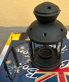 Lanterna a candela in ferro colore nera Alta 22 cm diametro 15 cm