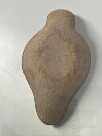 Piccola lanterna ad olio in terracotta con mascherone e cirnice a rilievo