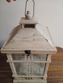 Lanterna in stile shabby chic. Legno e vetro. Condizioni perfette. Può essere usata per contenere un gomitolo di lucine, una candela o piccole piante. Bellissima. Base 26x26, altezza 40. È possibile vederla a Trento. Prezzo trattabile.