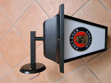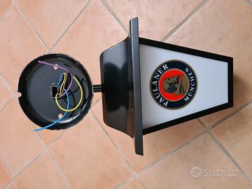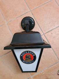 -Set composto da 4 lampade -Lanterna da Parete Paulaner München – Insegna Luminosa Pub/Birreria Vintage -La lampada presenta il classico design a lanterna con struttura in metallo nero e pannelli bianchi decorati con il celebre logo del frate Paulaner su più lati.