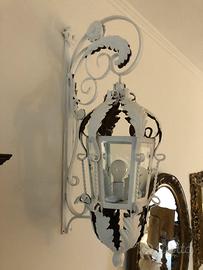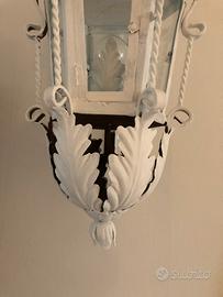 Lanterna in ferro battuto bianco opaco stile shabby elettrificata