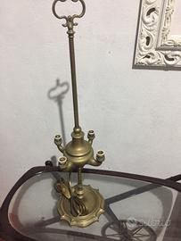Lanterna Fiorentina in ottone trasformata in lampada da tavolo con cablaggio nuovo per 4 lampadine