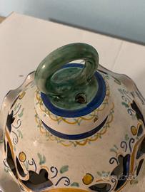 Vendo lanterna in ceramica siciliana prodotta da labiratorio Marsalese. In ottime condizioni, senza crepe o sbeccatire. Dimensioni: altezza 25cm, diametro base 13cm, diametro decoro 24cm. Vicino all’anello di appensione c’e il foro per far passare il cavo elettrico.