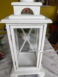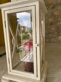 bellissima lanterna in vetro e legno fatta a mano ,con apertura frontale, con