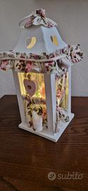 lanterna da appendere o da tavolo decorata completamente a mano. nuova e unica introvabile in commercio completa vasetto da inserire dentro con fiori e luci al led