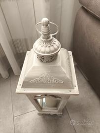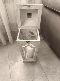 Lanterna per arredamento colore bianco in legno con candela. shabby chic misure 54 x20 cm