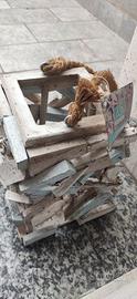 Lanterna shabby chic vintage nuova con cartellino. In legno. Dimensioni in foto.