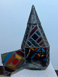 Bellissima Lanterna con vetri colorati utilizzabile anche come kampada perche sulka punta c e un firi per far passare il filo ekettrucio