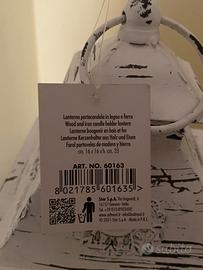 Lanterna portacandela in legno e ferro.