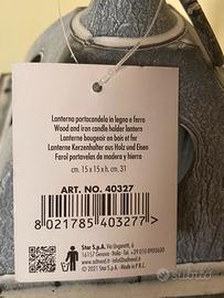 Lanterna portacandela in ferro e legno grigio in stile shabbychic da posizionare sia in qualsiasi angolo della casa o appesa in veranda grazie al suo occhiello.
