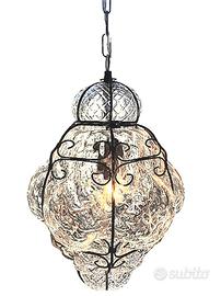 🔸Lanterna veneziana vintage di grandi dimensioni, prodotta da un'attenta e accurata lavorazione artigianale ispirata alla tradizionale produzione del vetro soffiato veneziano ingabbiato in telaio di ferro.