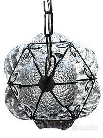 🔸Esclusivo e raro lampadario vintage di grandi dimensioni in stile lanterna veneziana, risalente alla seconda metà del secolo scorso, realizzata in vetro trasparente cristallo lievemente martellato.