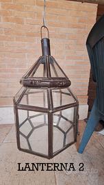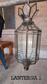 Si tratta di lanterne a sospensione in stile marocchino o neogotico vintage. La struttura in metallo color ottone e i pannelli in vetro sfaccettato le conferiscono un aspetto elegante e senza tempo. Lanterna 1 a sezione decagonale h: 50cm, larghezza 20cm Lanterna 2 a sezione ottagonale h: 37cm, larghezza 22/23 cm Con un minimo di manualità si possono dotare di lampade LED ornamentali. La coppia 80€ separate 50€ l'una.
