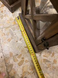 Lanterne con porta lampada interno, utilizzabili anche come segnapassi, alcune segnate leggermente sulla parte superiore (come foto) ma fornisco bomboletta spray del colore originale con il quale una arredatrice le ha dipinte.